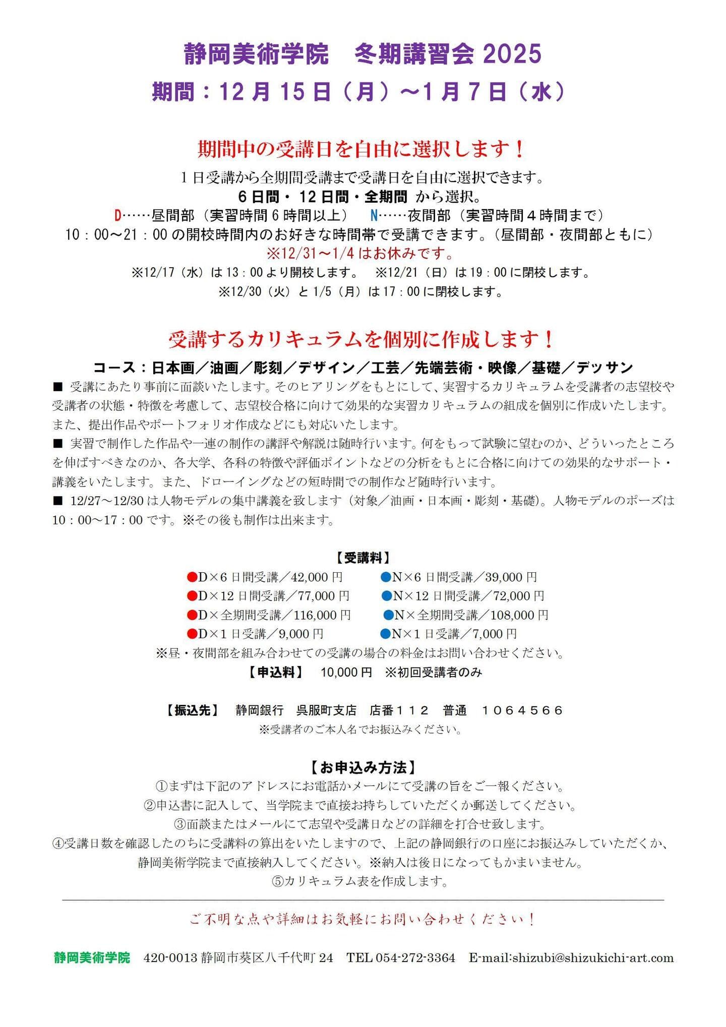 【芸大美大受験】2025 冬期講習会【美術系高校受験】